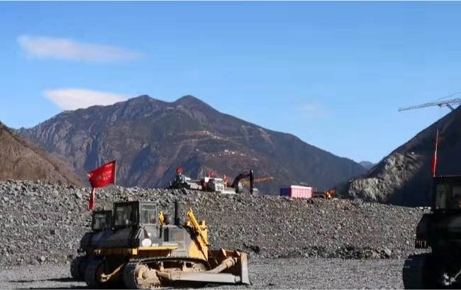 SD32推土機進行西南地區(qū)水電站壩體建設(shè),推土機將土、石子等松散物料進行推移堆積,壓路機壓平,澆注混凝土形成壩體。