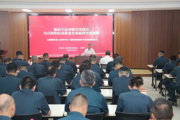 葉建軍對(duì)山推黨校的硬件設(shè)施配備、課程體系設(shè)置以及未來發(fā)展規(guī)劃給予了充分肯定,希望山推要以黨校新址啟用為新起點(diǎn),錨定航向、再接再厲、奮勇爭(zhēng)先,攜手打造國(guó)企黨校建設(shè)新標(biāo)桿。在山推黨校,葉建軍以學(xué)習(xí)中央八項(xiàng)規(guī)定精神為主題,為黨員干部講授了一堂深刻而生動(dòng)的專題黨課。他分別從深刻認(rèn)識(shí)加強(qiáng)作風(fēng)建設(shè)的重大意義、著力鍛造推動(dòng)山推高質(zhì)量發(fā)展的過硬作風(fēng)、以作風(fēng)建設(shè)新成效引領(lǐng)推動(dòng)山推高質(zhì)量發(fā)展等三個(gè)方面,進(jìn)行了深入淺出的講解輔導(dǎo),通過一系列生動(dòng)鮮明的案例,深刻闡述了中央八項(xiàng)規(guī)定精神的核心要義和實(shí)踐要求。