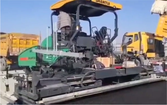 山推9米液壓伸縮攤鋪機(jī)助力山東某縣道建設(shè),道路瀝青施工,攤鋪厚度為3cm,攤鋪寬度為7.5m,與某進(jìn)口品牌攤鋪機(jī)雙機(jī)聯(lián)鋪,同臺(tái)競(jìng)技,在作業(yè)質(zhì)量、作業(yè)效率、操縱方式等方面,客戶非常滿意。
