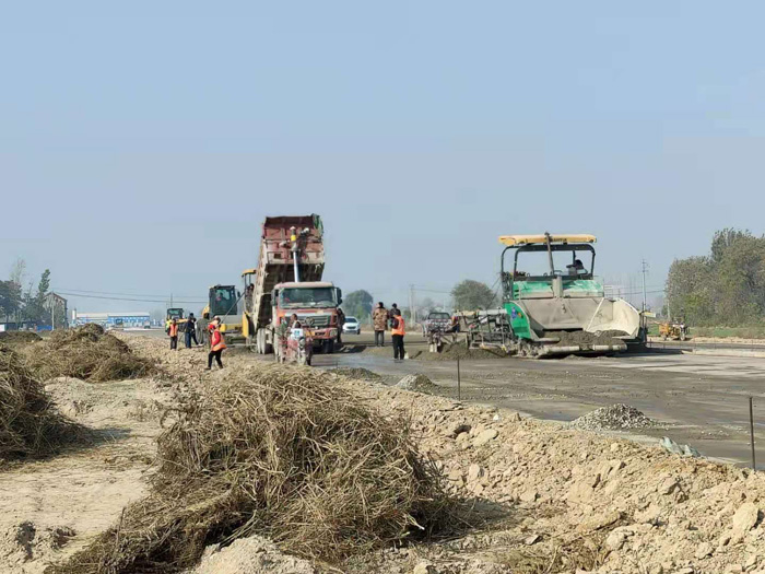 山推路面設(shè)備助力濰坊某園區(qū)道路施工