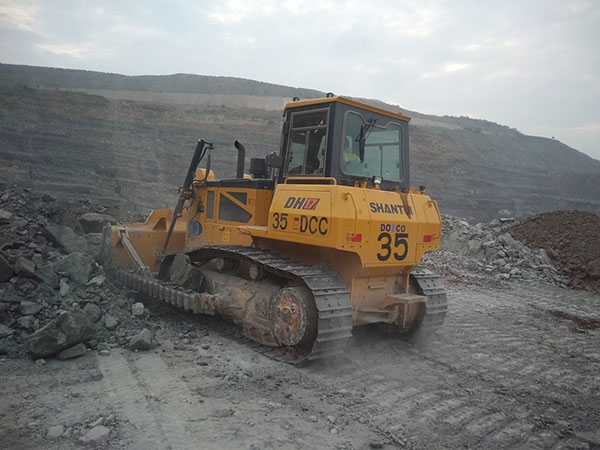 山推DH17推土機在印度某大型露天國有煤礦施工,該礦多巖石及土夾石工況,主要用于露天采煤工作平臺回填,以及爆破后采煤作業(yè)平臺碎石平整清理和短距離推運等工作。工作強度大,三班倒每天工作15小時以上,環(huán)境溫度高,工地溫度高達50℃,持續(xù)約3個月。