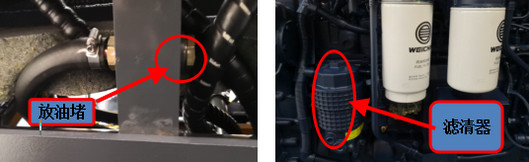 發(fā)動機放油時,發(fā)動機應在機油升溫至30-40℃,這樣污染物在懸浮狀態(tài)時放油。拆下燃油箱中側(cè)下部放油螺塞,通過燃油箱底部的放油孔放油。