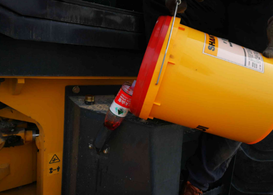 先將壓路機停放在平坦的地面上,處于水平位置。(注意:不要在冷車狀態(tài)下進行換油,將發(fā)動機運行10分鐘最佳,以增加機油的流動性)
